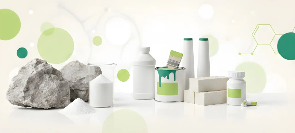 - كربونات الكالسيوم المترسبة (RCC): عالية النقاء وتستخدم في الصناعات الغذائية والصيدلانية والدهانات الراقية.